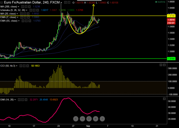 EUR/AUD has made a high of 1.6129 and slightly retreated till 1.5886 from that level. It is currently trading at 1.6014 level.