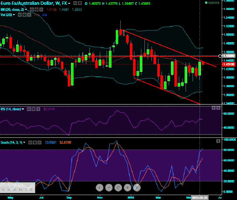 In addition that the pair is trending near upper channel line at around 1.4318 levels, any breach above this level can test a crucial resistance at 1.45 levels.