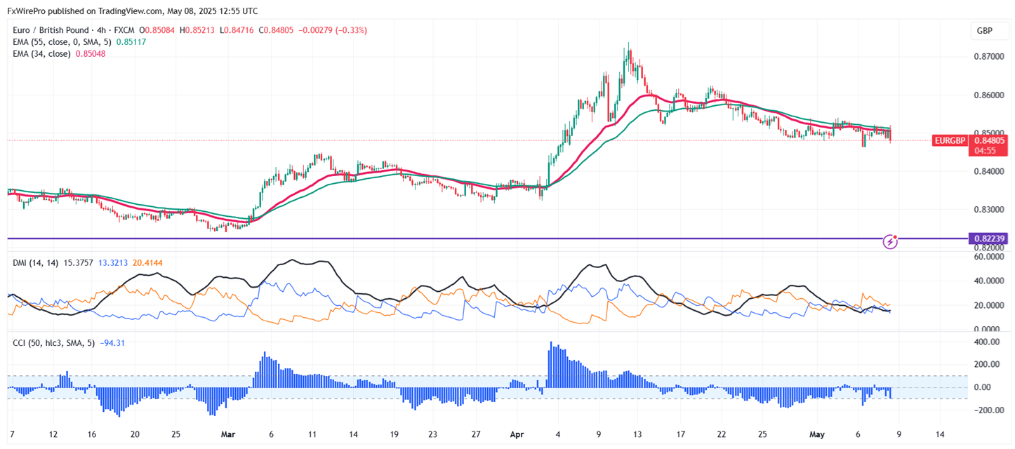 Bearish Trend Confirmation: Any break below 0.8450 confirms an intraday bearish trend. A drop to 0.8378/0.8300 is likely.