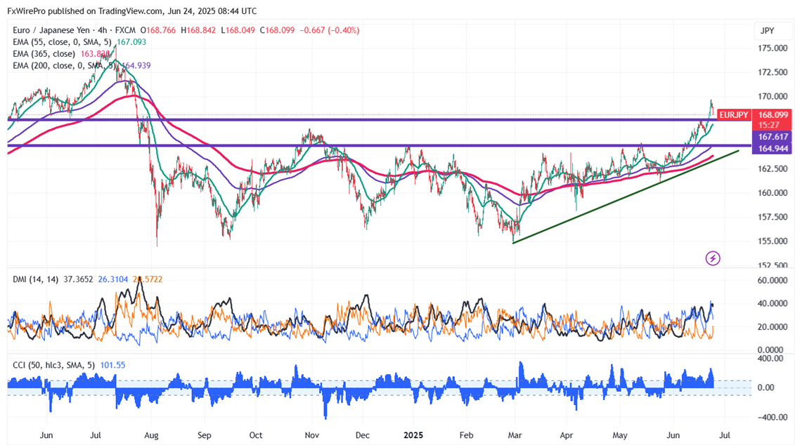 - Immediate Support: At 167.60 if breached, the pair could fall to 166.50/ 165.95/165.55/164.50/164.