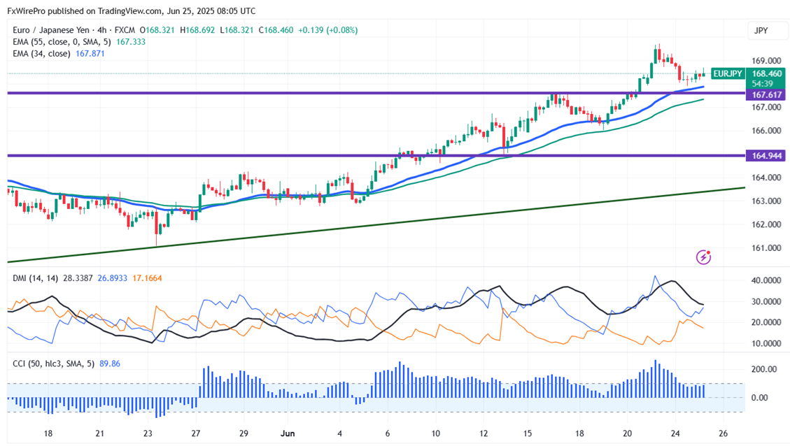 - Immediate Support: At 168 if breached, the pair could fall to 167.60 166.50/ 165.95/165.55/164.50/164.