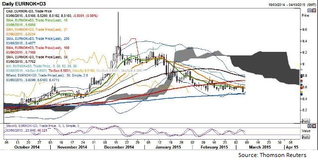A range break to 8.5102 but sees obstacles ahead, 200DMA/30D lower Bollinger Maintains a short from 8.5990, stop at 8.5950, and target 8.4725 Stochs have downside room but price halts Minor intraday resistance at 8.5225 and 8.5565
