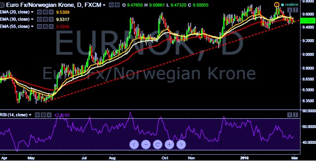 We prefer to take long position in EUR/NOK around 9.50, stop loss 9.4451 and target 9.56/ 9.68 thereafter.
