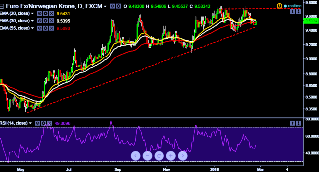 We prefer to take long position in EUR/NOK around 9.5350, stop loss 9.4418 and target 9.73 levels.