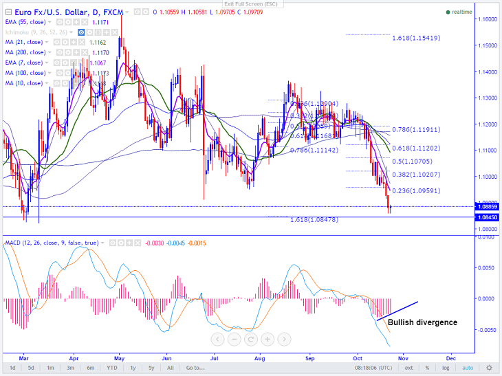 - On the lower side, major support is around 1.08475 (161.8% retracement of 1.1045 and 1.13660) and any break below targets 1.0820 (Mar 10th 2016 low)/1.0775.