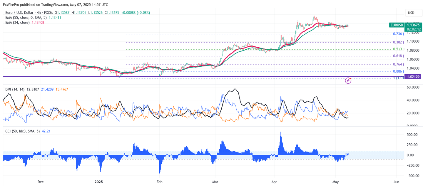EUR/USD trades flat ahead of US Fed monetary policy. It hit an intraday high of 1.13779 and currently trading around 1.13693.