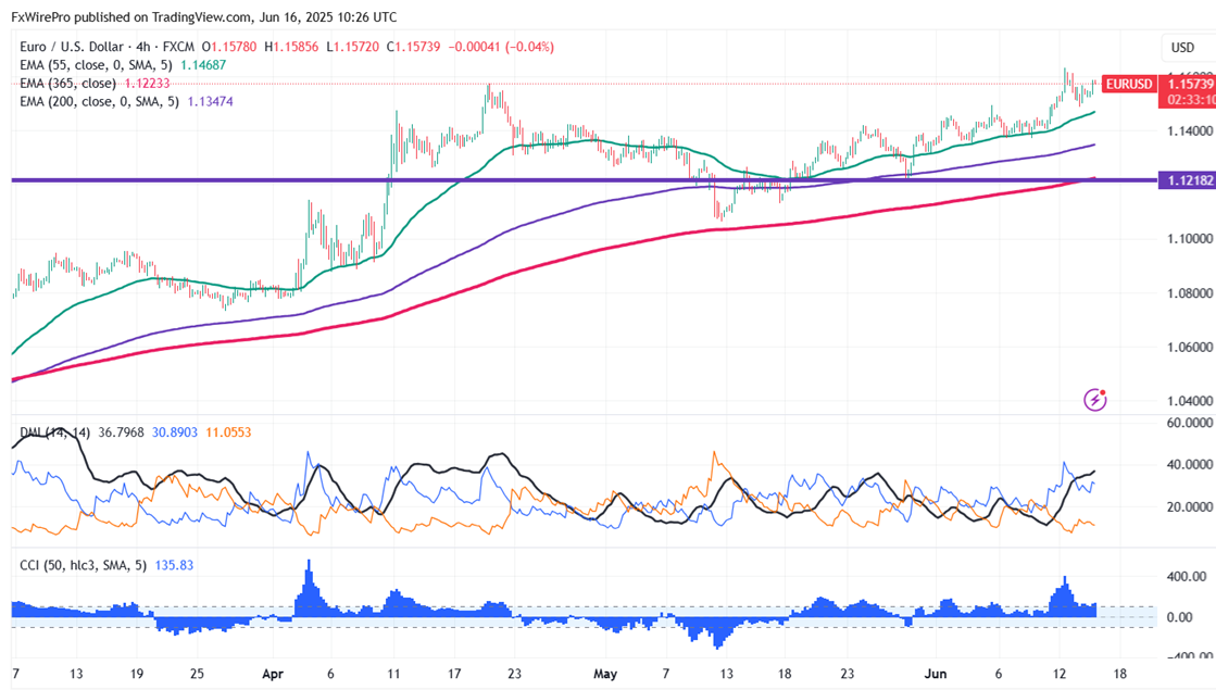 The pair is holding above short and long-term moving averages in the 4-hour chart. Near-term resistance is seen at 1.1600; a break above this may push the pair to targets of 1.1635/1.1660. Major bullish momentum is likely only if prices are able to break above the 1.160 target of 1.1660. On the downside, support is seen at 1.1525 any violation below will drag the pair to 1.1480/1.1435/1.135/1.1300/1.1265.