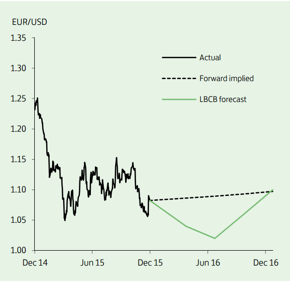 "We look for EUR/USD to retest the lows below 1.05 in the early months of 2016", notes Lloyds Bank.