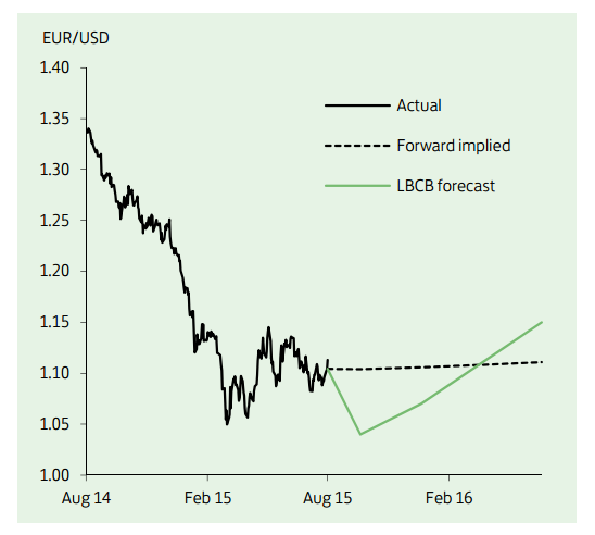 A fading of euro area risk premia, a steady and more sustained upturn in euro area growth and an eventual winding down of QE in 2016 should see the euro post a more sustained improvement in due course. For now, however, it is believed that the single currency remains vulnerable to renewed weakness if, as expected, the Fed raises interest rates next month. Amid rumours that snap elections may be called, Greece's third bailout remains subject to significant implementation risk. EUR/USD is expected to drop to 1.04 by the end of Q3. But in the absence of a renewed conflagration in peripheral markets, a move down towards parity should mark the low.