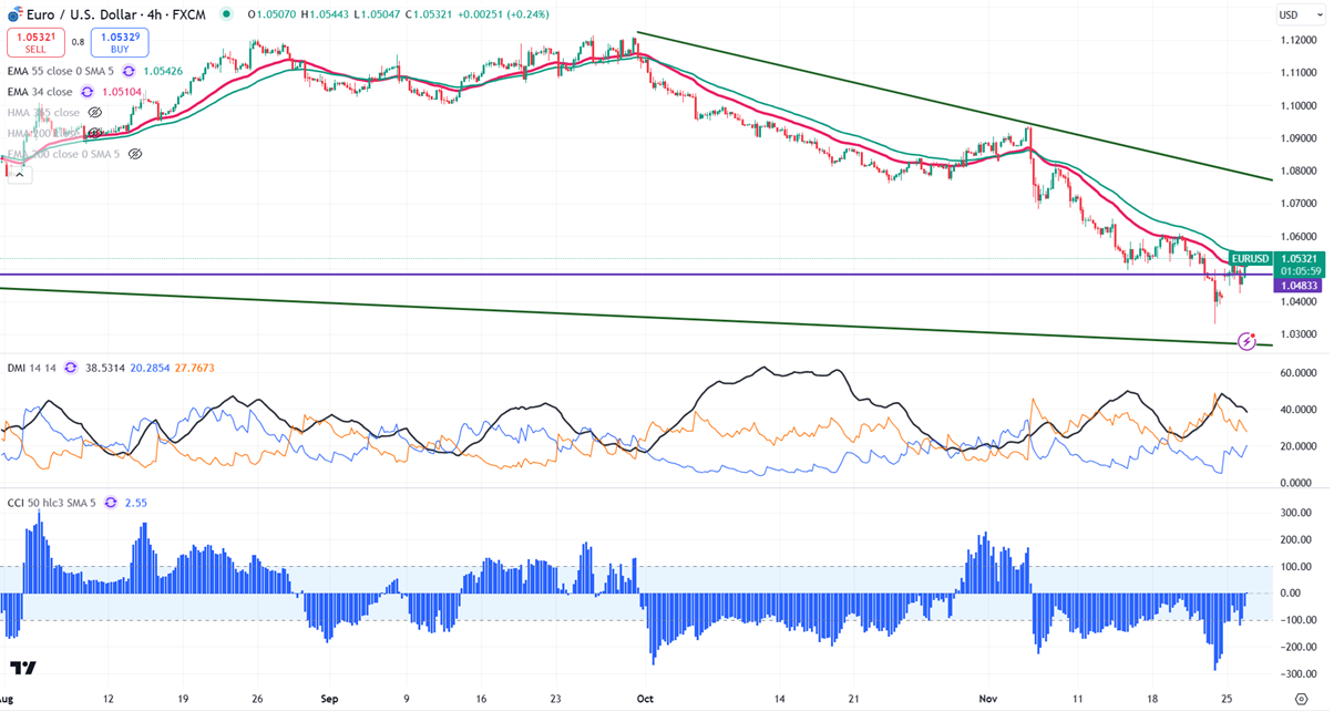 EUR/USD recovered sharply on upbeat market sentiment. It hit a high of 1.05443 at the time of writing and is currently trading around 1.05219.