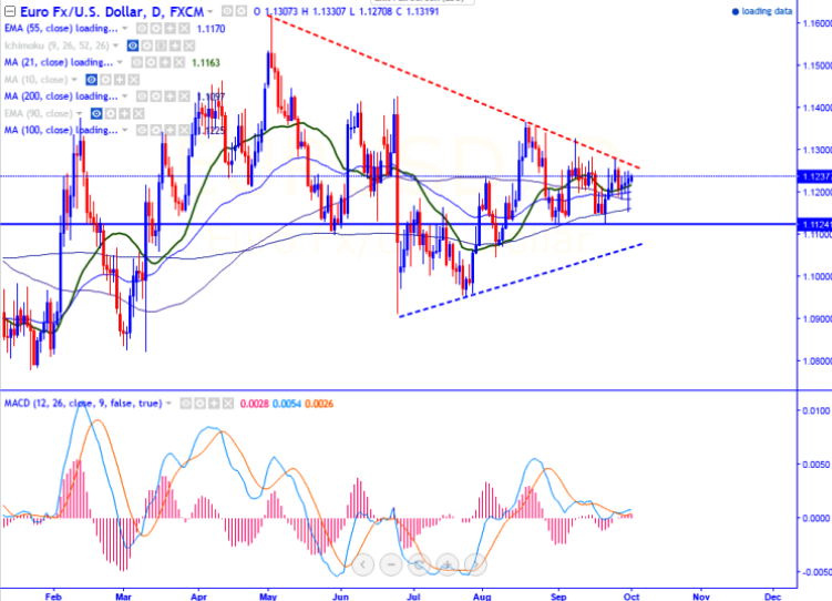 - The pair has taken support at 200- day MA and jumped from the level. It has jumped till 1.12507 level and is currently trading around 1.12373.