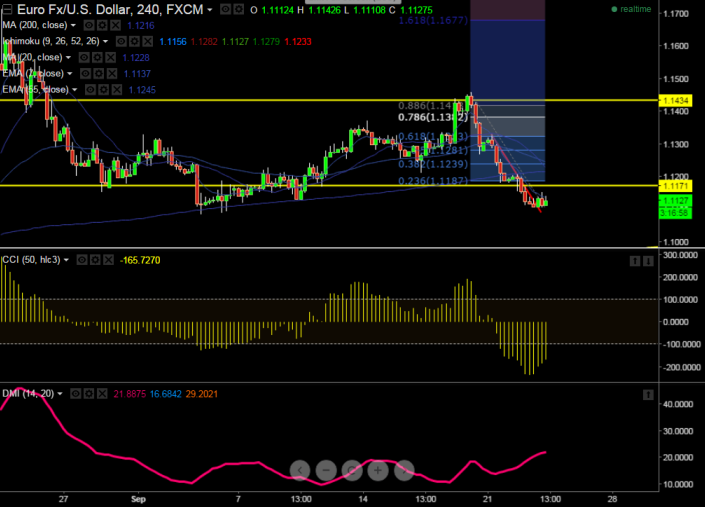 EUR/USD has made a low of 1.1107 and slightly recovered from that level. It is currently trading at 1.1222.