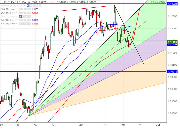 - Intraday major resistance is around 1.11560 (trend line joining 1.12958 and 1.12129) and any break above will take the pair till 1.118 (55&89 EMA) in the 4 hours chart/1.12075 (100 MA)/1.1230/1.12950. The pair should break above 1.1300 for further jump till 1.1360/1.14350.