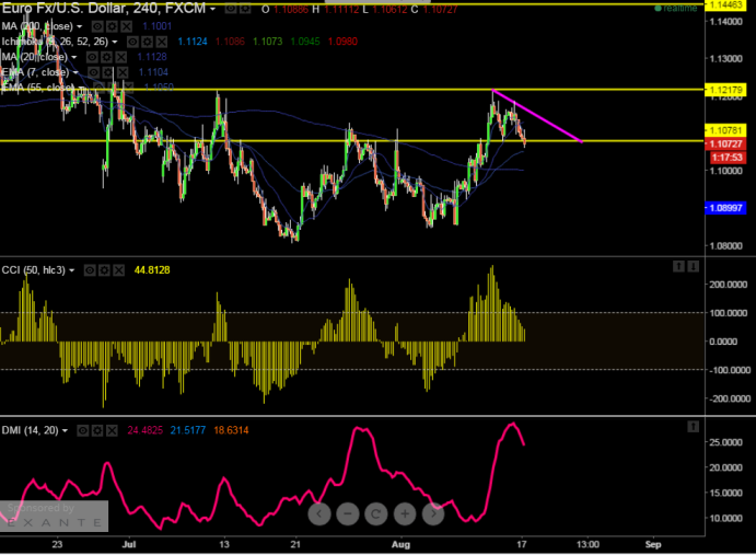 - The pair's major intraday support is around 1.10790 (Aug 13th low) and any break below will take the pair further down till 1.1000/1.0950/1.0920.