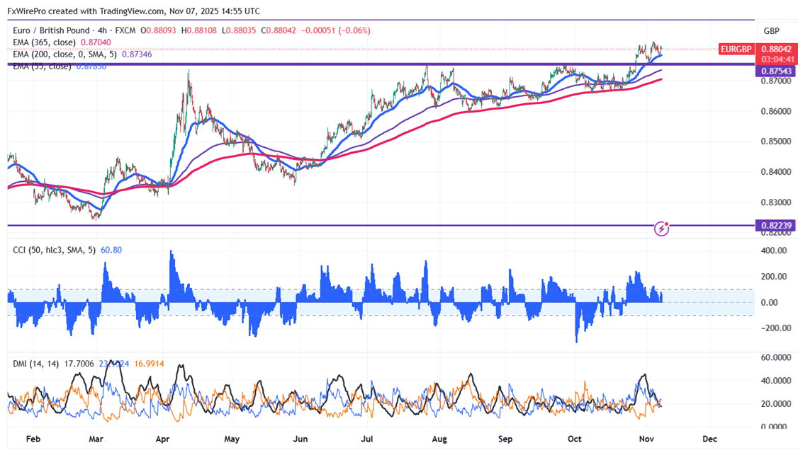 Near-Term Resistance: The near-term resistance is around 0.8825. Any violation above will take the pair to 0.8850/0.8900.