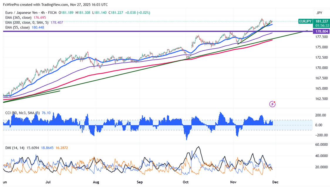 - Immediate Support: At 180.75, if breached, the pair could fall to 180/179.70/ 179.20/178.90/178.40/178/177.25/176/175.20.