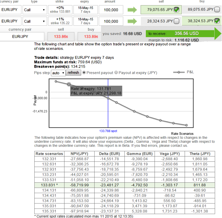 Kindly compare the earnings on prevailing rates with our previous call on the Bull Put Strategy on the same EURJPY, the traders who've acquired this position earlier and their portfolio may have already generated around 500 plus JPY by now. Intraday traders can book their profits but hedgers should remain quite. Fresh positions can still be constructed as we foresee downside pressure on Yen.