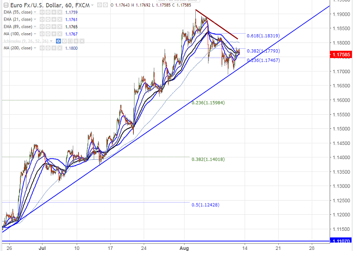 - EURUSD has formed a bottom around 1.16886 on Aug 9th 2017 and showing a minor recovery from that level. EURO jumped till 1.17887 after weaker than expected U.S PPI data.