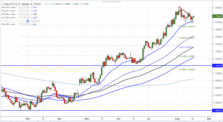 - The near term resistance is around 1.1850 and any break above will take the pair till 1.19103 (Aug 8th 2017)/1.19391 (1.13% retracement of 1.19103 and 1.16880)/1.1200.