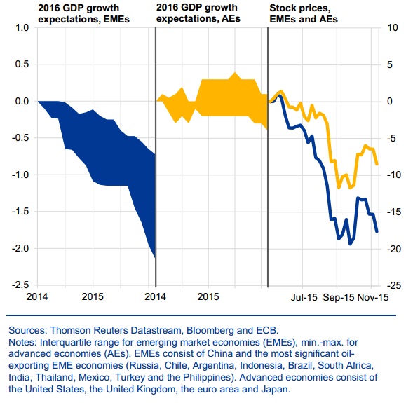 European Central Bank (ECB) is considering emerging market weakness to be Europe's top vulnerability and according to ECB forecast, emerging markets' GDP on an average to shrank more than 2% in worst case scenario and -0.7% under best case.