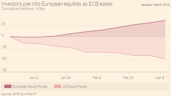 - As evident from the chart, courtesy to financial times, investors poured in money to European equities more than $ 25 billion, whereas US equities saw outflow close to $ 50 billion.