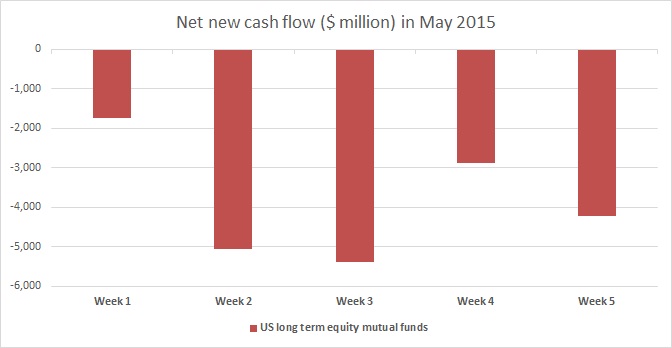 - Latest data from ICI, a market intelligence group that track flow of money shows that after pulling out more than $28 billion in March and April, investors pulled out more than $19 billion from US long term mutual funds.