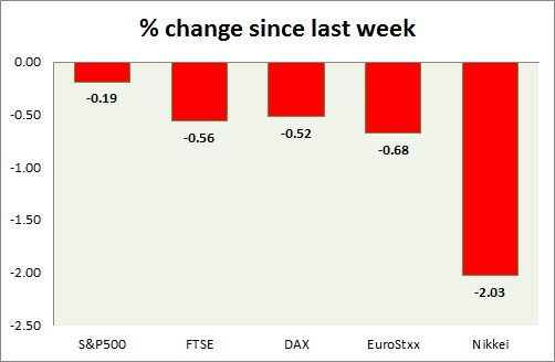 Equities are pairing losses after massive loss since last week. Performance this week at a glance in chart & table -