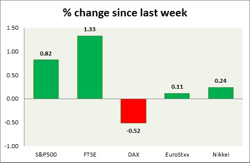 - EuroStxx50 is currently trading at 3580, up by +0.5% today. Support lies at 3300 and resistance at 3760.