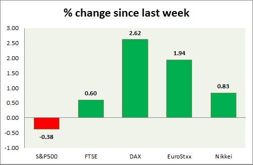 Equities are gaining ground today after. Performance this week at a glance in chart & table -