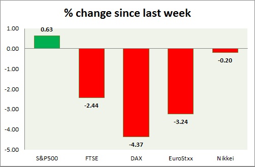 Equities are mixed today but overall trying to regain footing. Performance this week at a glance in chart & table -