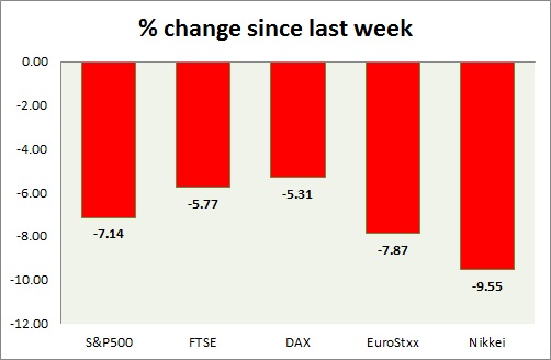 - Germany is down (-5.9%), France's CAC40 is down (-7.2%), Italy's FTSE MIB is down (-5.9%), Portugal's PSI 20 is down (-6.8%), Spain's IBEX is down (-6.4%)