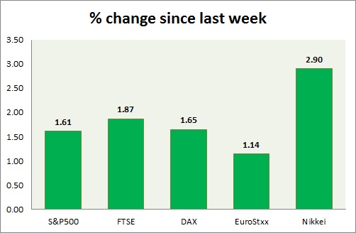 Equities are all mixed today. Performance this week at a glance in chart & table -