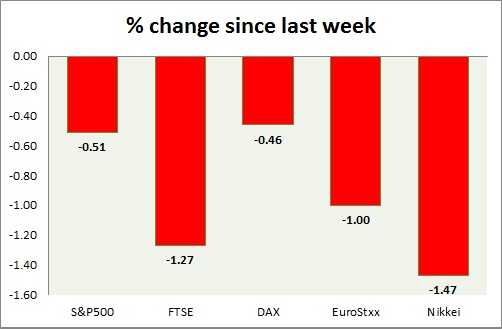 Equities are all mixed today. Performance this week at a glance in chart & table -