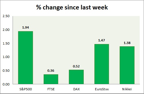 Equities are all mixed today. Performance this week at a glance in chart & table -