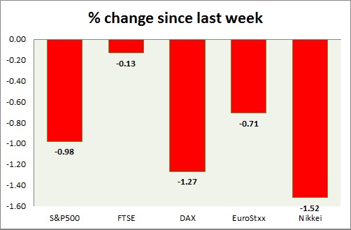 Equities are all mixed today. Performance this week at a glance in chart & table -