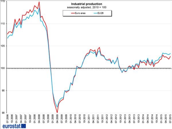 Euro area industrial production has beaten estimates for July, growing 0.6% from June, while median expectation was just about 0.2%.