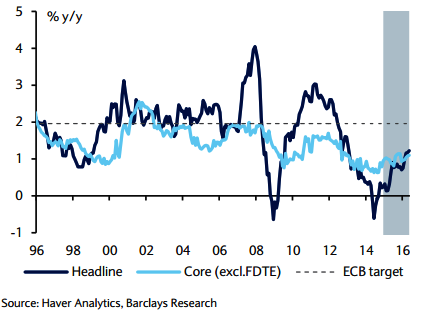 "Indeed, the euro area inflation is expected to be materially below the ECB's target next year and, as such, expect the ECB to ease policy further by year-end", says Barclays.