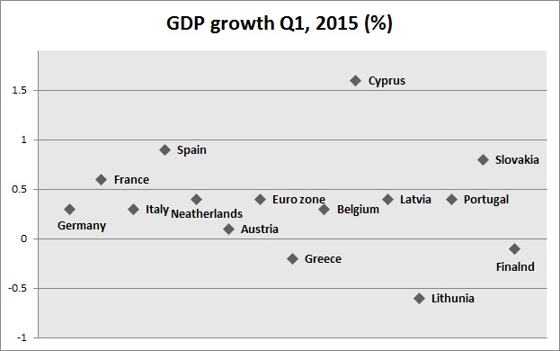 - Growth was negative in Greece (-0.2%), Finland (-0.1%) and Lithuania (-0.6%).
