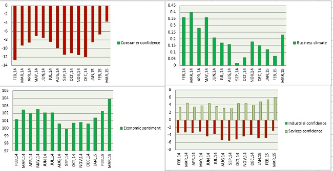 Indicators across EMU suggests that ECB's monetary policy easing through asset purchase is sipping in through real economy and boosting confidence pan industry.