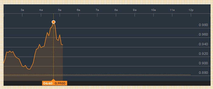 - German 10 year yields are up 5.33%, trading at 0.93% today. Yield is likely to move further above, technically speaking 1% mark might provide some interim resistance as profit booking. Yield traded as high as 0.993% in today's trading.