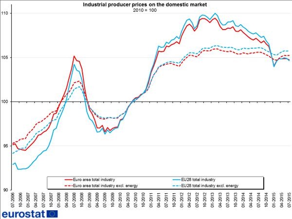 - Latest data from Eurostat revealed producer price deflation continued across Euro Zone in July, as prices dropped by -0.1%, down -2.1% from a year ago.