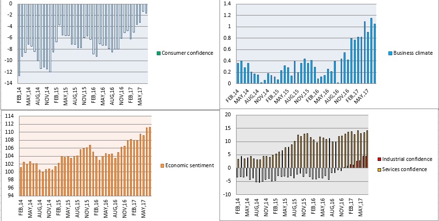 By many measures, sentiment across the European continent has jumped to their highest level I more than a decade as the political risk diminishes after Emmanuel Macron’s victory in the French election, earlier this year and as data points to a strengthening of recovery across Europe. For example, Spanish economy posted best quarterly growth since 2014, while yearly growth touched the highest level since 2011. The unemployment rate also declined to the lowest level in 8 years.