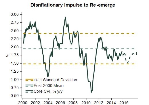 - Inflation has remained well below FED's mandate of price stability with medium term inflation at 2%. Argument is that while lifting interest rates is an effective weapon to fight inflationary threat, premature rise might push the economy back towards deflation as inflation is no-where to be found.