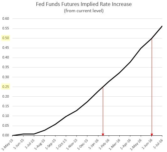Chicago FED president Charles Evans reiterated his stance once more today, no rate hike in 2015 but first one in 2016. Chart courtesy Sober look.