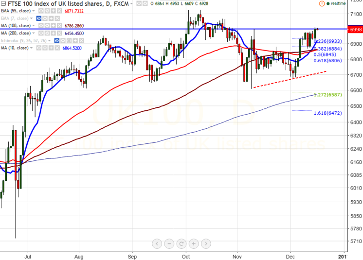 - On the higher side, index is facing pschycological resistance at 7000 and any violation above that level will take the index till 7130.The 7130 level is the temporary top formed on Oct 11th 2016 and any break above targets 7300 level.