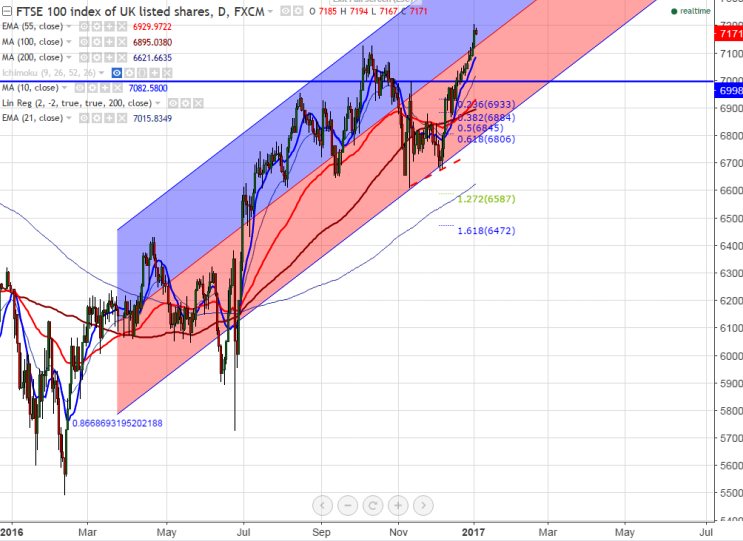 - The index breaks major resistance at 7130 and slightly jumped till 7206 yesterday. FTSE100 hits 20 months high and is currently trading at 7172.