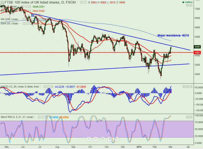 FTSE100 faces strong resistance around 6210, break above targets 6325