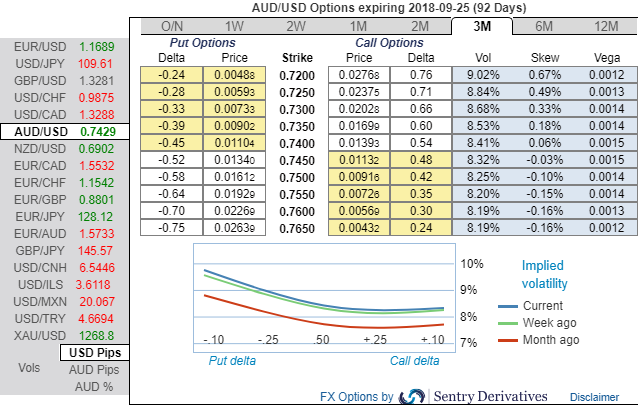Please be noted that the positively skewed IVs of 3m tenors signify the hedgers’ interests to bid OTM put strikes upto 0.76 levels (above nutshell). While bearish neutral delta risk reversal indicates that the hedging activities for the downside risks remain intact.