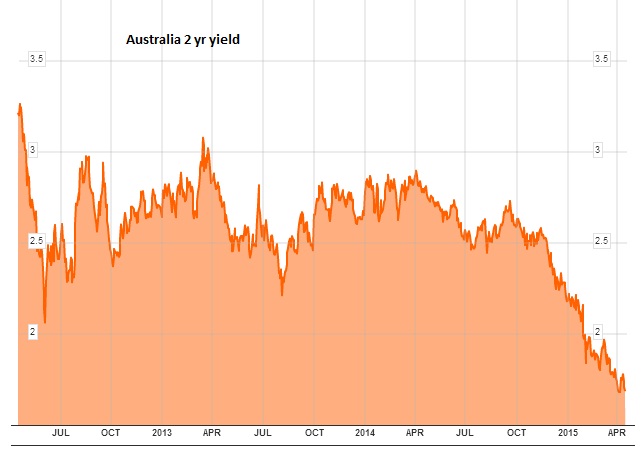 - Australian yield have started falling quite rapidly since October last year as market is expecting further easing by RBA. Australian 2 year yield chart is added, which shows yield has dropped more than 100 basis points since October last year and so far showing no signs of stabilizing.