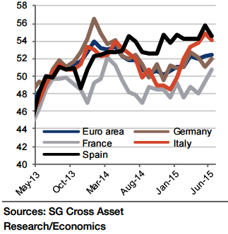 The German manufacturing PMI is expected to tick up from the flash estimate to of 51.6. Turning to Italy and Spain, the PMIs are expecetd to remain high but to fall from the June level, consistent with the confidence surveys.